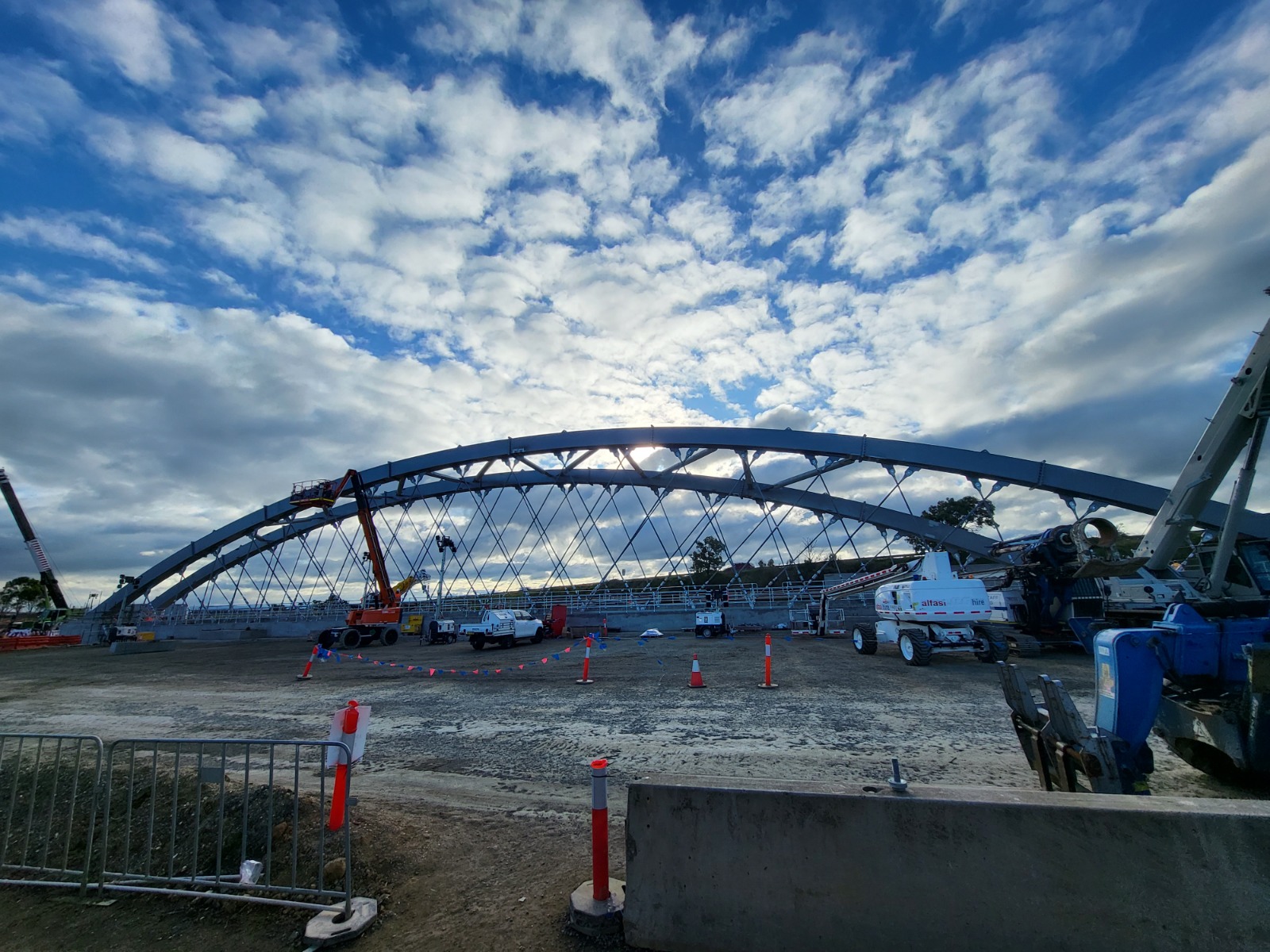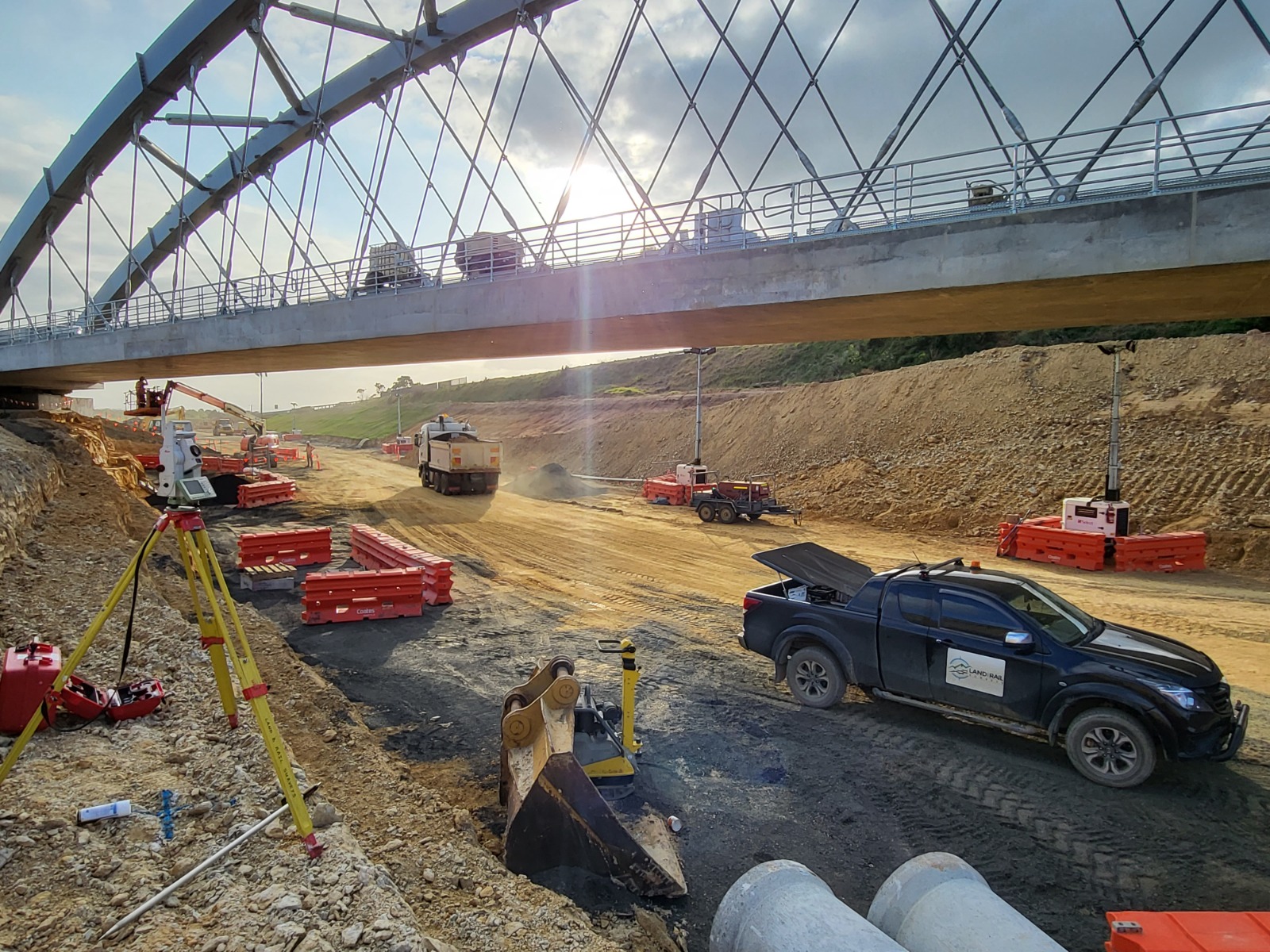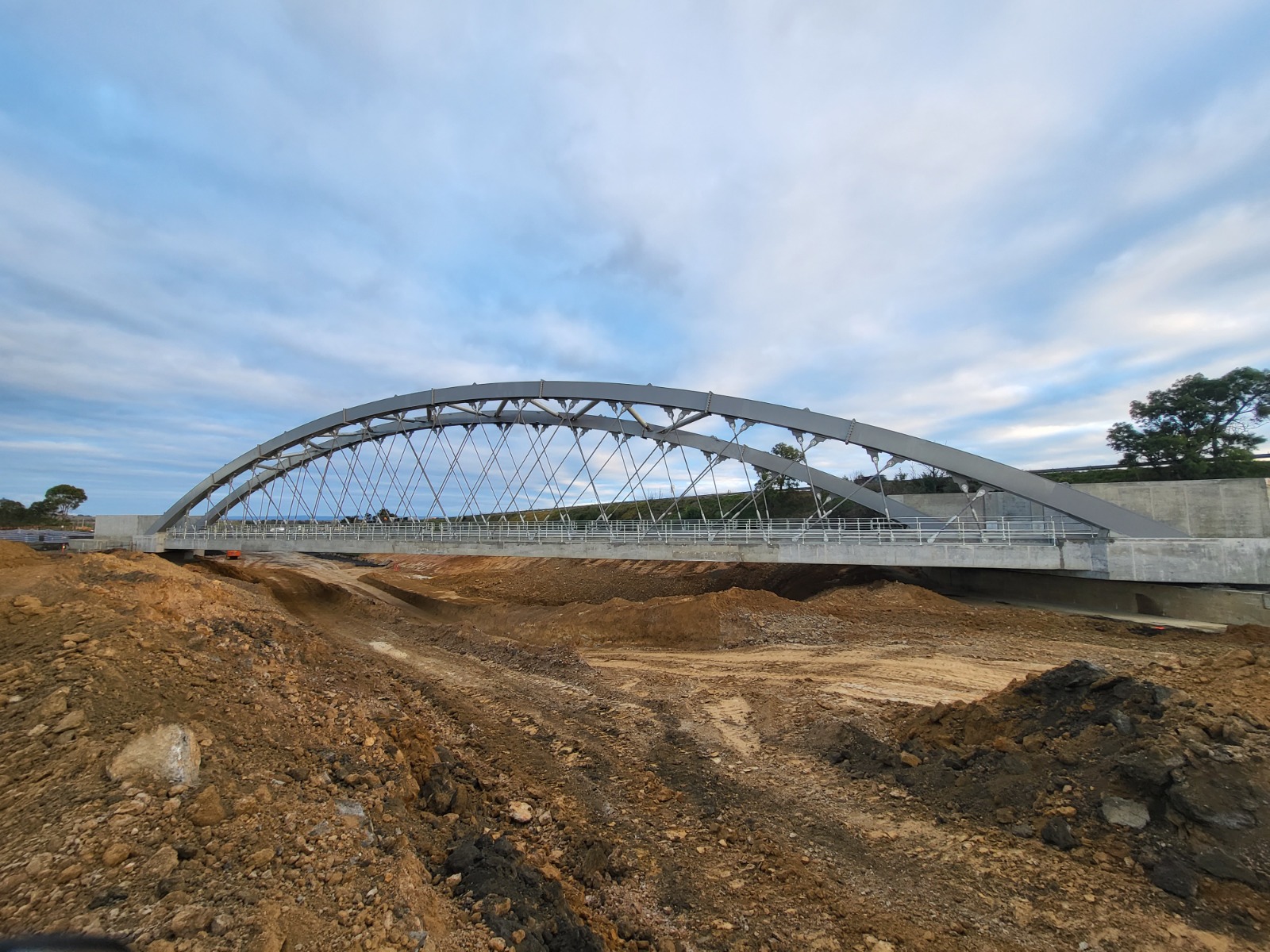 To minimise disruption to the rail line, the bridge’s concrete deck and steel arch were constructed offline then transported into place using a slide rail and high-strength jacking system. The duplication of the highway added an extra two lanes to create a dual-lane carriageway separated by a central median. There were 3 additional intersection upgrades and 3 waterway crossings.